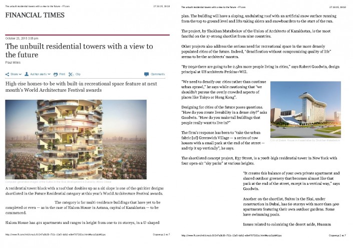 Проект "Дом слалом" казахстанского архитектора  Шохана Матайбекова получил приз зрительских симпатий по версии Financial Times, сообщает корреспондент Tengrinews.kz.