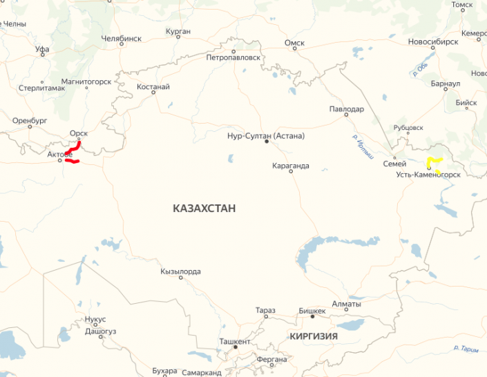 Самара - Шымкент, 773-853 километры, участок дороги от поселка Белогорка до города Хромтау;