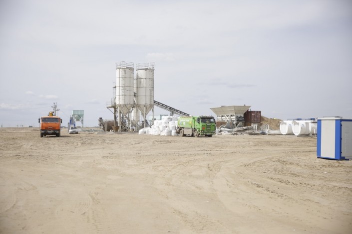 "Сейчас здесь ведется заготовка материалов, обустройство. В этом месяце мы должны начать строительство объездной дороги. На самом объекте планируем строительство завода железобетонных изделий, грунтосмесительного и в дальнейшем планируем строительство асфальтового завода мощностью 2,5 тысячи тонн", - рассказал руководитель проекта компании "Сине Мидас Строй "БК" Алтай Камысбаев.