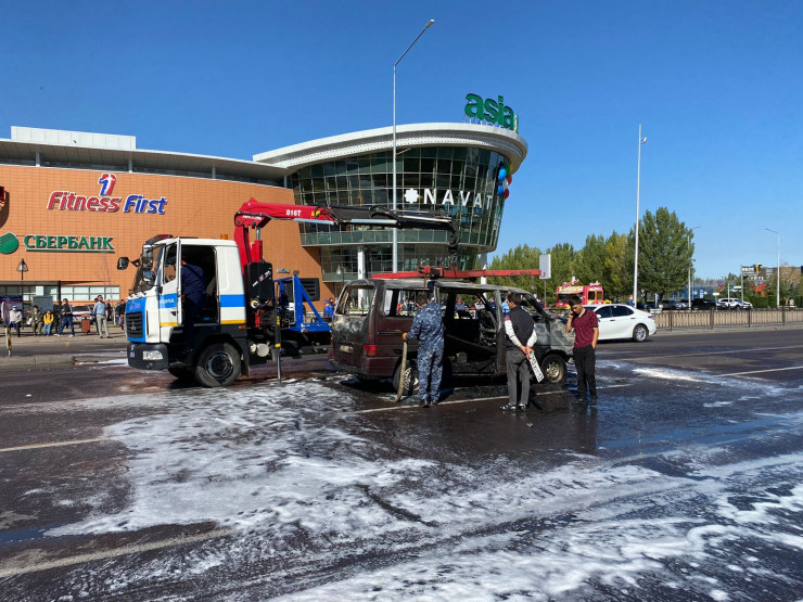 "10.40, район Есиль, проспект Кабанбай батыра, напротив ТРЦ "Азия-парк", горит микроавтобус марки Volkswagen, выехала СПЧ-6 (12 сотрудников и 2 единицы техники)", - сообщили корреспонденту в столичном ДЧС.