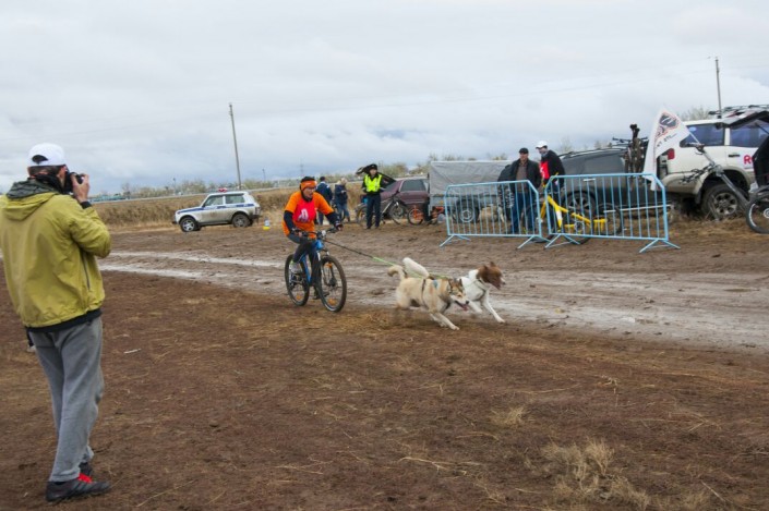 Очень зрелищными и захватывающими получились гонки в дисциплине байкджоринг - велосипед, запряженный одной или парой собак, когда спортсмены обгоняли друг друга изо всех сил, невзирая на грязь, летящую в лицо из-под колес и лап собак.