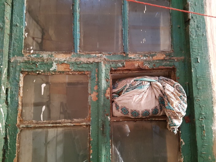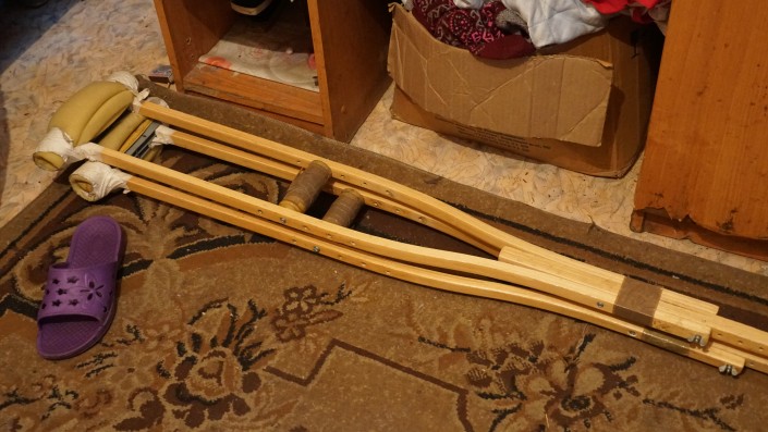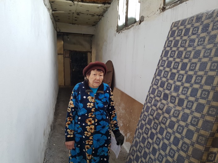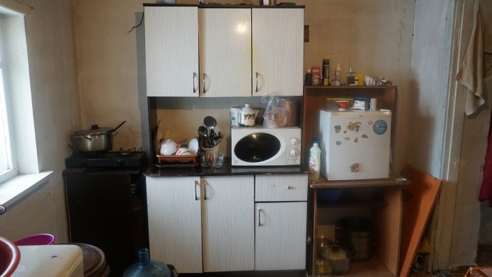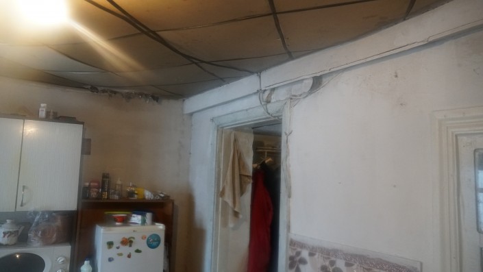 В этом общежитии около шести комнат. Еще есть второй этаж. В первой комнате на первом этаже живет семья. Недавно женщина сломала ногу, перенесла операцию, сейчас ей сложно передвигаться.