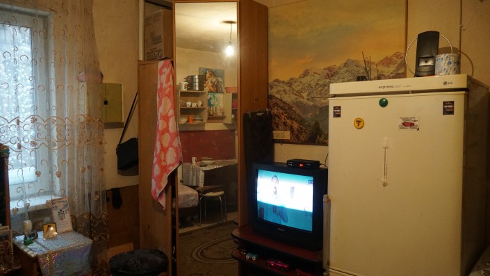 "Дети уже взрослые, напротив нашей комнаты живут. Вот думаем о переезде. Здесь уже лет пять живем. 30 тысяч за комнату платим. Вот сейчас задерживают зарплату мужу. Я на пенсии. Двое пацанов взрослые уже, тоже на стройке работают. Двое детей в Израиле. Как вы видите, у меня все чисто. Газ в общежитии в каждой квартире, туалет дома. Ну, сложно приходится", - рассказала Людмила.
