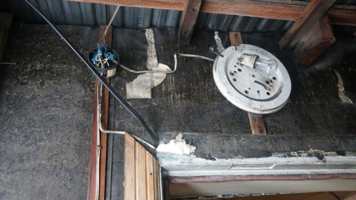 Судя по потолку, тут проблемы не только с печью, но и с проводкой.