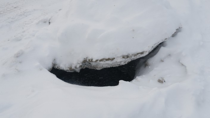 Пока мы шли в очередную из времянок, чуть не провалились в присыпанный снегом канализационный люк.