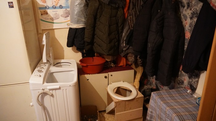 За холодильником прихожая. Тут же самодельный унитаз.