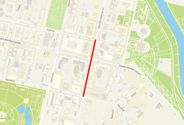 С 5 по 8 августа будет полностью перекрыто движение для автотранспортных средств на участке проспекта Мангилик Ел от улицы Алматы до улицы Орынбор.