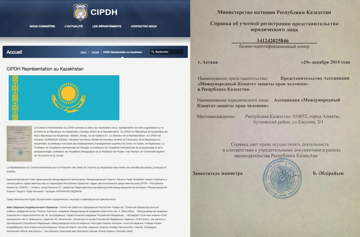 Аббревиатура CIPDH на номерах с гербом означает Comité International pour laProtectiondes Droits de l’Homme, что с французского - "Международный Комитет Защиты Прав Человека". Организации имеет обширную сеть в различных странах, в том числе и в Казахстане. Судя по справке, размещенной на официальном сайте организации, она работает "в рамках законодательства Республики Казахстан".