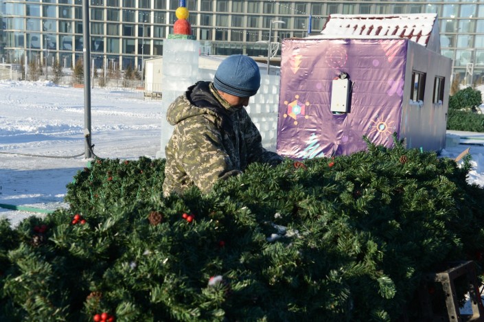 "Елка установлена на территории выставки EXPO-2017, у подножия павильона "Нур Алем". Также там пройдет открытие ледового городка. Темой городка в этом году станет EXPO. В нем будут ледяные копии Хрустального дворца, отстроенного к первой выставке EXPO 1851 года в лондонском Гайд-парке, и Эйфелева башня - входная арка выставки 1889 года. Также будет установлена копия знаменитого дворца из Диснейленда высотой шесть метров и сооружен 80-метровый лабиринт высотой до полутора метров", - рассказали в управлении.