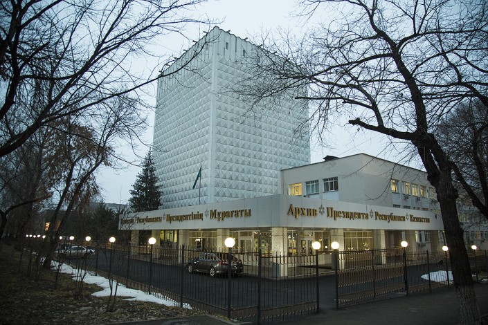 Здание архива располагается в Алматы по проспекту Достык.