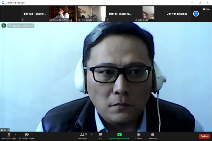 Дамир Шыныбеков слушает приговор / Снимок экрана с онлайн-заседания