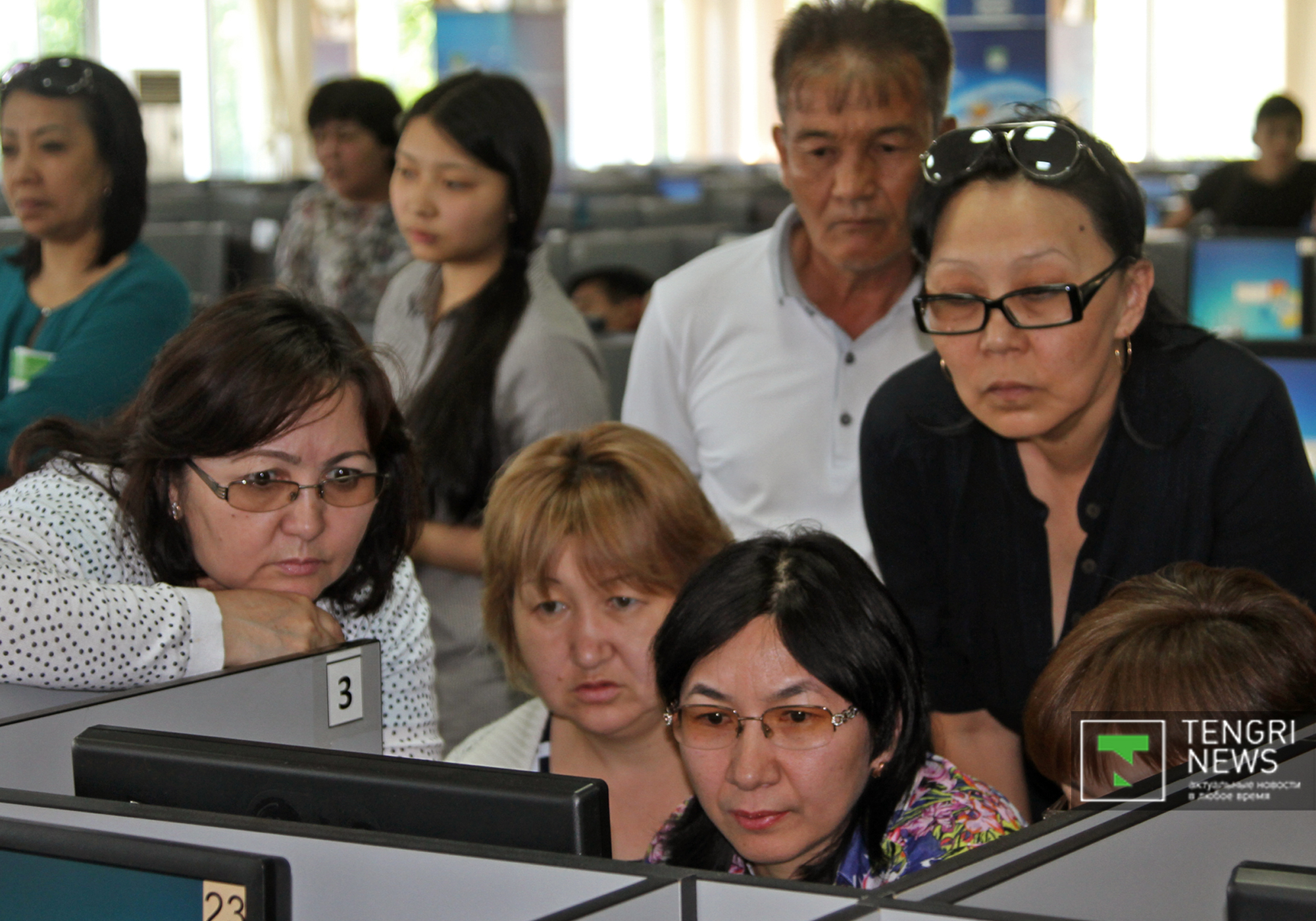 В КазНУ имени Аль-Фараби тестирование сдают выпускники 40 школ Бостандыкского района. Всего заявления подали 1309 человек, разделенных на три потока - 2, 4 и 6 июня. Для поступления в национальные вузы сдающим ЕНТ-2015 надо набрать 70 баллов. Родителей выпускников пригласили посмотреть, как их дети сдают ЕНТ-2015, в компьютерном центре вуза. Там 250 мест. Также за ЕНТ-2015 можно наблюдать из дома через специальный сайт вуза. По словам системного администратора учебного интернет-центра вуза Светланы Торекуловой, такая система действует с 2009 года. "В аудиториях установлены веб-камеры, которые транслируют изображение через Интернет. Все открыто, прозрачно. Большинство родителей сегодня проводили своих детей в зал и решили наблюдать за тестированием в нашем зале", - сказала она. Отметим, веб-камеры можно поворачивать, а изображение на них - приближать.