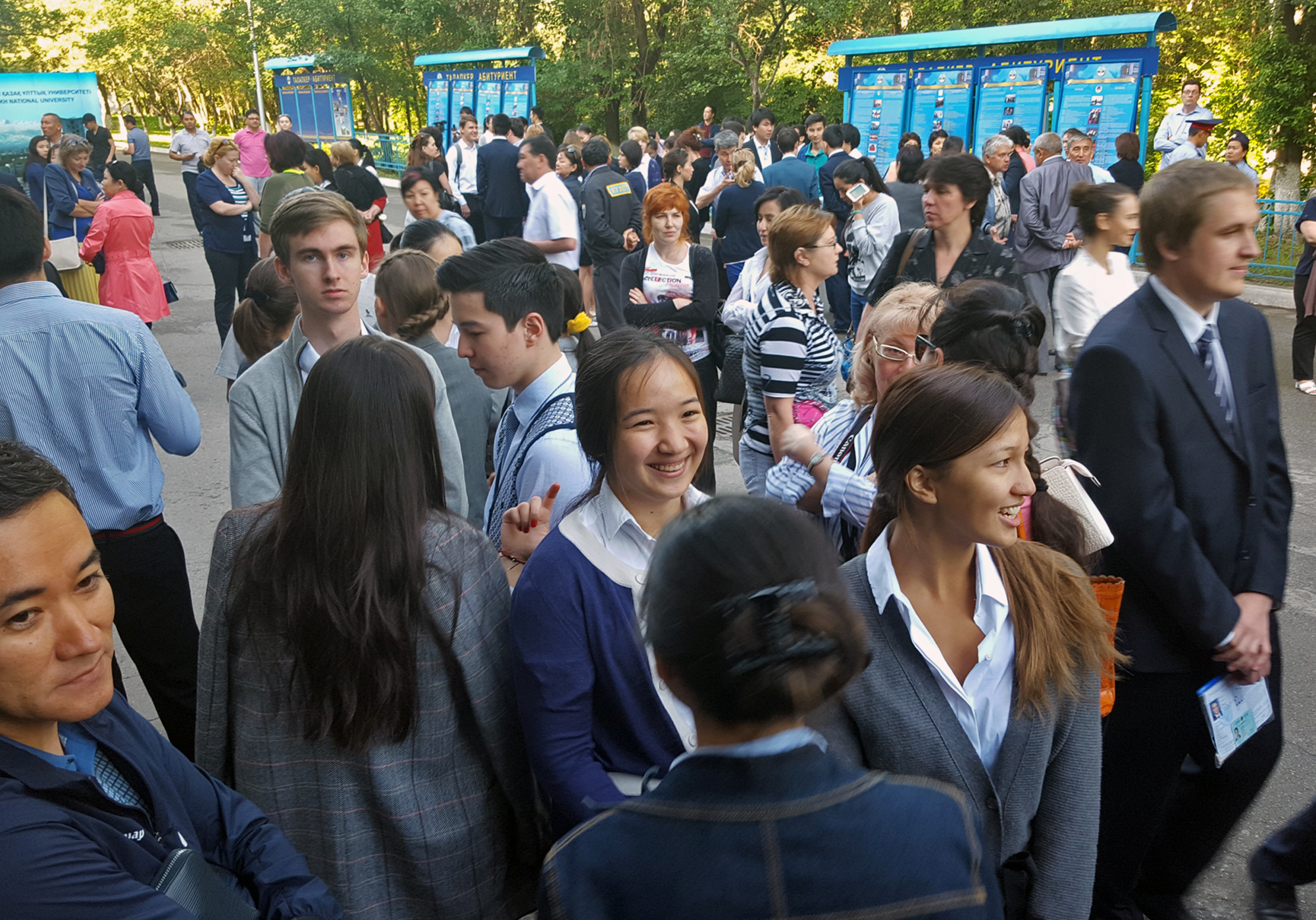 Один из пунктов тестирования для ЕНТ-2015 развернули в старейшем вузе Казахстана КазНУ имени аль-Фараби. Как сообщили представители учебного заведения, участникам экзамена предоставляется питьевая вода, на территории учебного заведения развернули биотуалеты. Также создана специальная аудитория для детей с ограниченными возможностями. На месте дежурит автомобиль противопожарной службы. По словам руководителя пункта приема ЕНТ-2015 в КазНУ имени аль-Фараби Жандоса Кумганбаева, на момент, когда учеников запускали в здание, нарушений выявлено не было. Все мобильные телефоны у школьников изъяли и отдали родителям и директорам школ. Детей запускали через металлоискатель. "После окончания экзамена дети смогут посмотреть свои оценки на специальных стендах или на www.testcenter.kz. Для этого нужно ввести свой ИИН или ИКТ", - сказал он. Напомним, результаты ЕНТ-2015 решили засекретить.