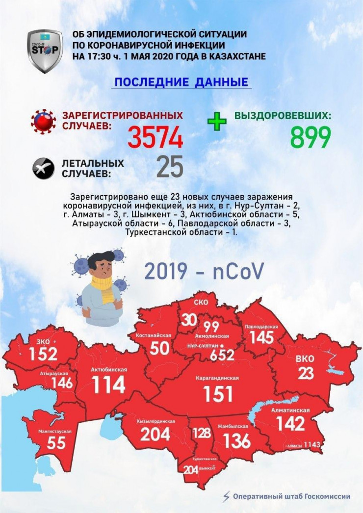 Тем не менее Алматы остается "лидером" по числу выявленных случаев и смертей от COVID-19. А 1 мая мегаполис побил антирекорд по зафиксированным случаям болезни.