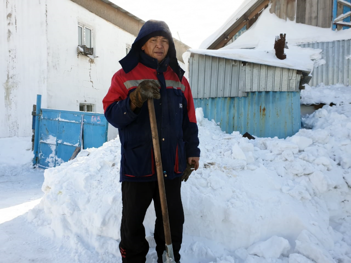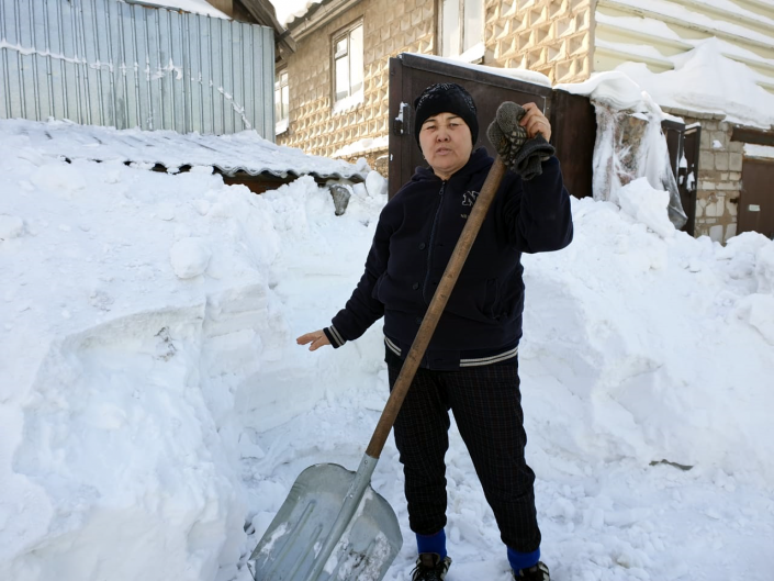 "Үйдің ауласындағы қарды шамамша жолдың бойына шығардым. Ал оның барлығын шығарсам, жолды қар басып, көлік жүре алмай қалады", - дейді тұрғын.