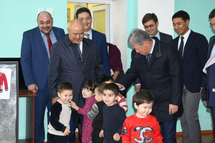 Еще одним объектом, который посетили Есимов и Шукеев, стал детский сад, который пришлось восстанавливать чуть ли не с нуля. Больше всего фонду пришлось восстанавливать образовательные объекты – 16 школ, 1 колледж, 6 государственных и 30 частных детских садов. Во время посещения детского сада некоторые воспитанники старшей группы узнали представителей власти и подошли обняться.