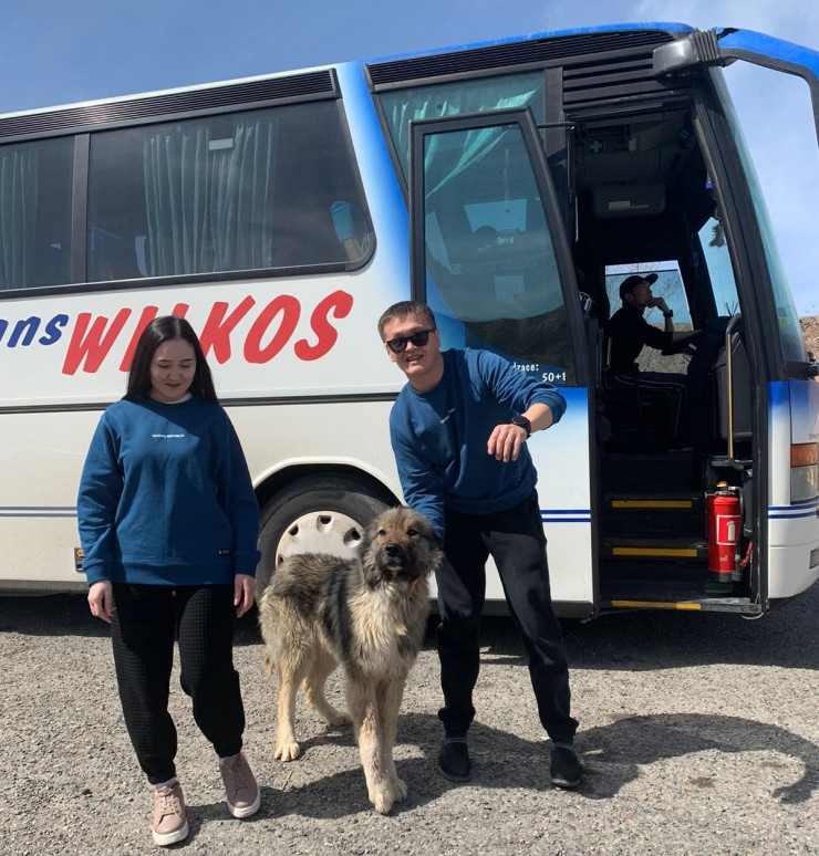 Уалихан Бейсабаев вместе с супругой и спасенной собакой