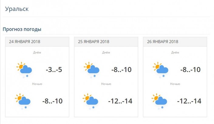 В двух городах на западе Казахстана - в Атырау и Уральске - выдалась относительно не холодная погода. В Атырау 24 января ожидается снег, -1...-3 градуса. 25 января и 26 января дневная температура понизится до 5-8 градусов мороза. В Уральске 24 января температура воздуха 3-5 градусов мороза. 25 и 26 января ожидается снег, дневная температура воздуха составит 8-10 градусов мороза.