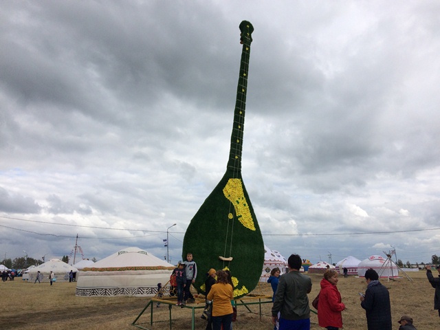 "Ее ширина - 2,7 метра, высота вместе с постаментом - 11 метров, основа металлическая, покрытая искусственным газоном. Изготовление любимого казахами народного инструмента заняло три дня. Домбра состоит из двух частей, которые мы в единое целое собирали уже на месте в этноауле. Ювелирную сборку гигантского инструмента провели сотрудники ИП "Булат". Один из символов национального творчества казахов - домбра - стал популярной фотозоной праздника. В дальнейшем планируется, что необычный "инструмент" найдет свое место во дворе экибастузской музыкальной школы", - рассказала Бугумбаева.