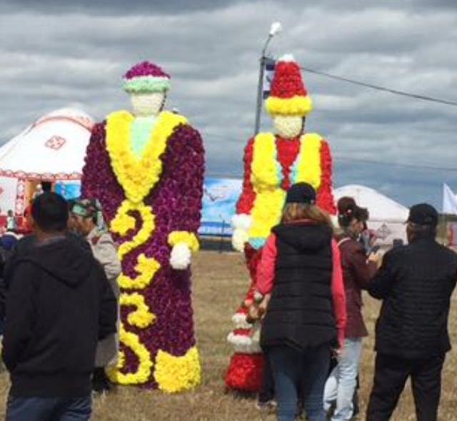 Еще одним подарком от города горняков стали трехметровые фигуры девушки и парня, украшенные тремя тысячами искусственных цветов. "Мы собирали фигуры молодых людей на территории парка "Шахтер", с ними было очень интересно работать. Для украшения костюмов выбирали яркие цвета. За те два дня, что мы трудились над инсталляцией, к нам неоднократно подходили горожане и интересовались, куда мы готовим молодых людей. Конечно, мы очень рады, что наша работа нашла достойное место на "Ұлы дала елi". После праздника, возможно, она вернется в парк "Шахтер", - поделилась директор центра "Досуг" Людмила Гончарова.
