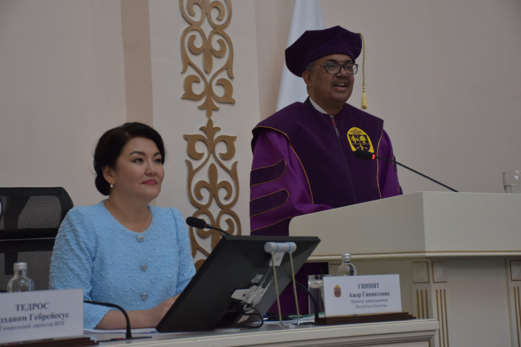 Тедрос Адханом Гебрейесус сегодня посетил ведущий медицинский вуз Казахстана - Казахский национальный медицинский университет (КазНМУ) имени С. Д. Асфендиярова.