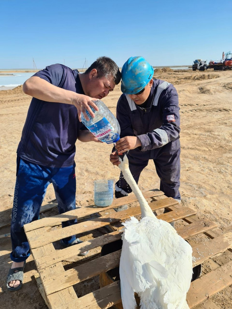 По информации пресс-службы АО "Эмбамунайгаз", птиц спасли работники их подрядной компании - ТОО "Сервисное буровое предприятие "Казмунайгаз-бурение".