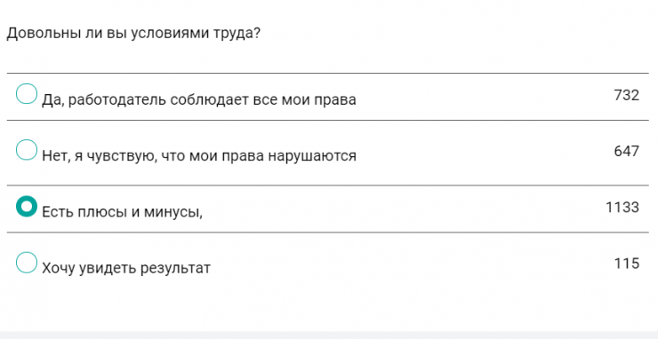 29 процентов оказались довольны условиями труда. А 25 процентов указали, что работодатель нарушает их права.
