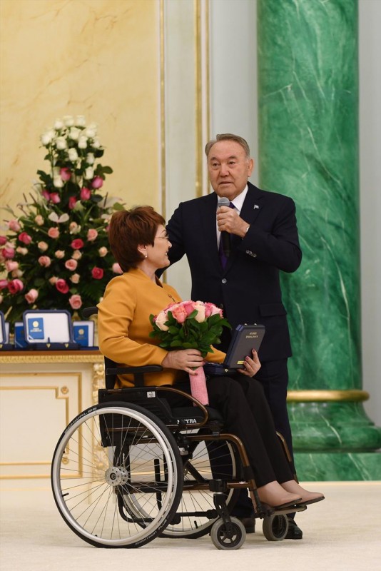 "Все, кто жалуется на жизнь, трудности, - учитесь. Сама получила такие невзгоды в аварии, считали, что она ни к чему не пригодна и всю жизнь будет прикована к постели. Она - герой теперь", - сказал Нурсултан Назарбаев, вручив высокую награду Куралай Байменовой.