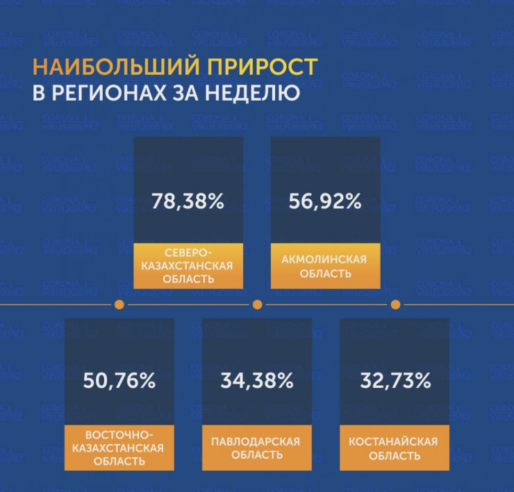 Инфографика по коронавирусу в Казахстане: в каких регионах самый высокий прирост