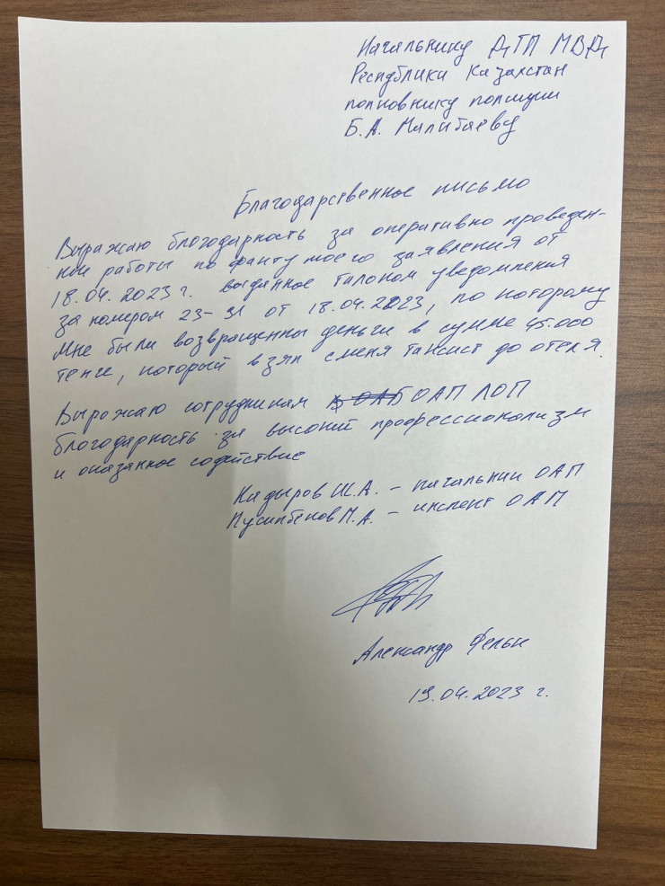 "Утром 18 апреля в Линейный отдел полиции в аэропорту обратился 43-летний гражданин Германии, прибывший рейсом авиакомпании Lufthansa сообщением Франкфурт - Алматы. Он попросил принять меры в отношении неустановленного водителя такси, который отвез его из аэропорта до гостиницы по умышленно завышенной цене, за 45 000 тенге.