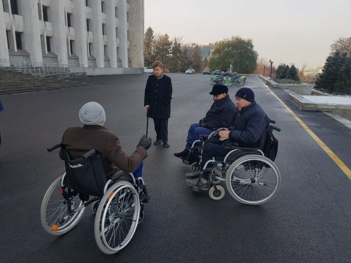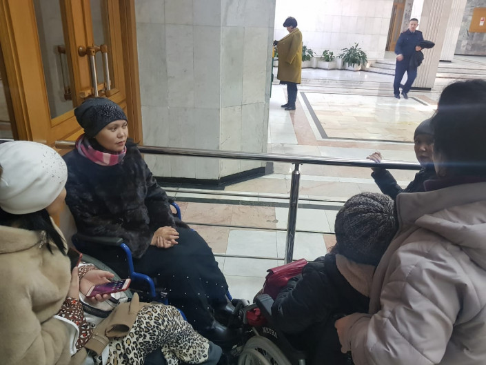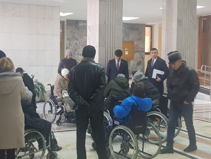 Инвалиды-колясочники собрались возле акимата Алматы