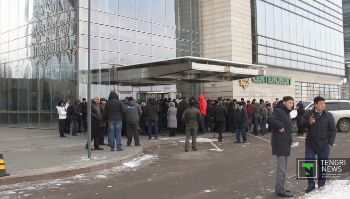 После акции у Казкома ипотечники прошли к отделению банка ЦентрКредит, которое находится в соседнем здании. Каждый из них надел на руку повязку с символикой, похожей на знак этого банка, только выполненной в черной расцветке. Выкрикивая требования о встрече с председателем и название банка, ипотечники сняли с себя повязки, кинули их на землю и сожгли прямо перед входом в банк.