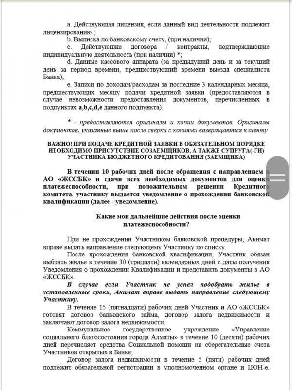 "Оценка платежеспособности в Жилстройсбербанке будет проходить в упрощенном порядке. Участнику программы необходимо будет подтвердить доходы для оплаты ежемесячного платежа по займу и минимальной суммы для проживания в размере 5 МРП (12 625 тенге) на одного взрослого человека. Расходы на детей при оценке платежеспособности учитываться не будут. Кредиты будут выдавать на покупку только нового жилья", - уточнили в финансовом институте.