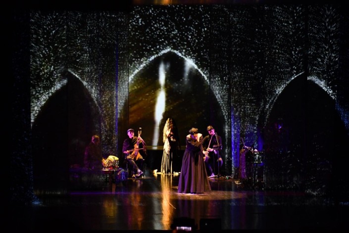 3D-проекции, которые привезли с собой музыканты, добились потрясающего эффекта, визуально увеличив сцену Холла Энергии, придав ей глубину и невероятную атмосферу. С самых первых нот свет заискрился в такт музыке, погрузив зрителей в темный ночной лес. Индийские барабаны и иранские национальные инструменты играли в неспешном ритме, аккомпанируя звонкому и глубокому голосу вокалистки Азам Али.