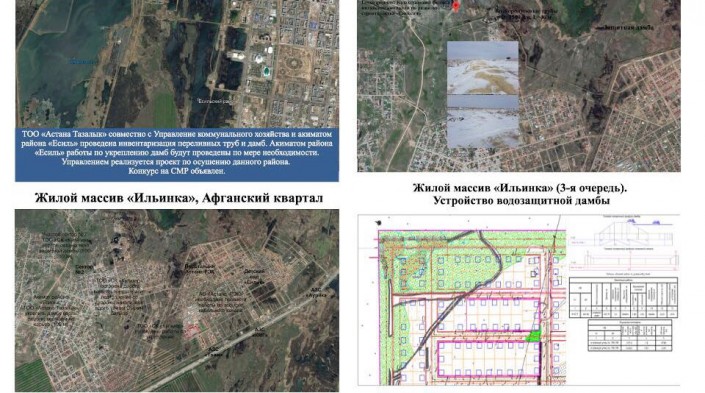 Городским акиматом также были осуществлены выезды и в жилой массив Ильинка. По поручению Асета Исекешева восстановлена дамба протяженностью 500 метров в районе афганского квартала, укреплены нарушенные участки. Ситуация держится на постоянном контроле.