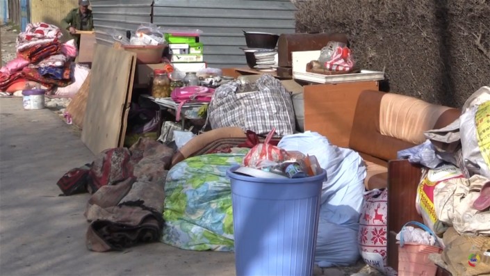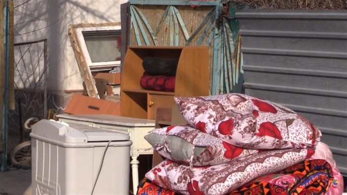 Мебель и домашняя утварь выставлены прямо на улицу. © tvk-uko.kz