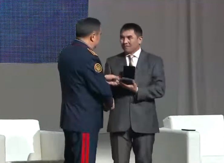 За хорошие показатели акима образцового села отметил глава МВД. Министр вручил Ерлану Оспанову медаль "За внесенный вклад в обеспечение порядка".