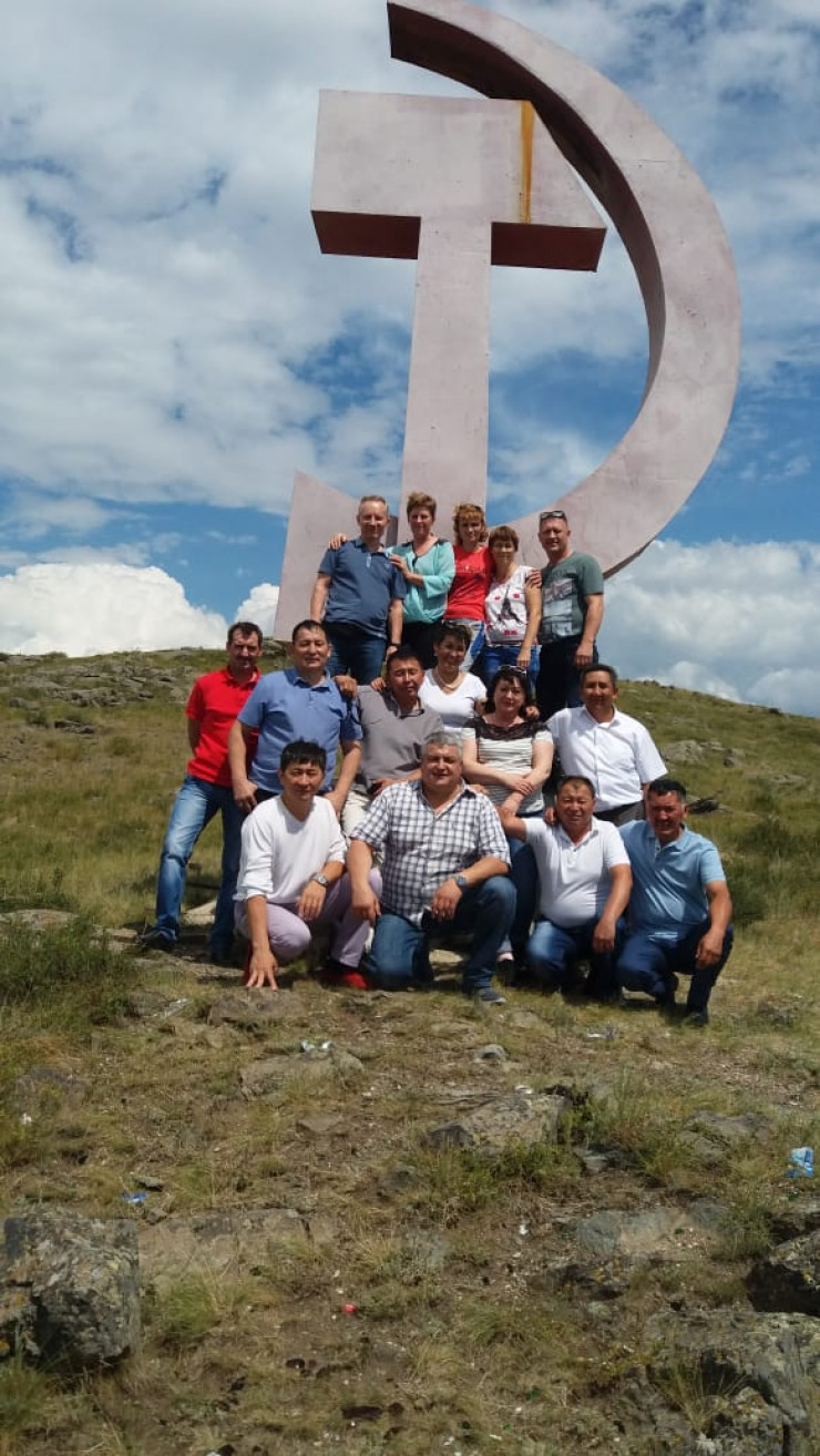 Несколько дней назад акбастауцы нашли свой знаменитый символ лежащим на боку. Кто-то подпилил основание. Люди собрались, вручную при помощи веревок подняли двухтонный знак и приварили на место. Буквально через ночь серп и молот исчезли совсем. Жители обнаружили только обломок серпа в степи. А на постаменте появился флаг Казахстана.