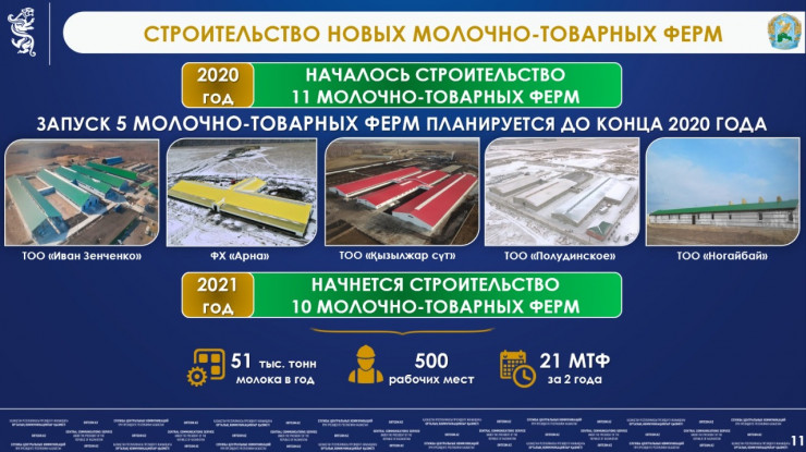 Также в СКО реализуются проекты мясного животноводства. В этом году вводится ферма на 1 000 голов казахской белоголовой породы. Продолжается строительство двух откормочных площадок на 13 тысяч голов. Запуск запланирован на следующий год. Также ведется строительство второй очереди свинокомплекса, которая позволит увеличить количество голов с 50 до 100 тысяч. Запланировано открытие генетического центра.