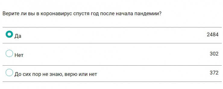 Мнение участников опроса значительно отличается от того, что было в самом начале пандемии. Сейчас большая часть опрошенных, а именно 78 процентов, верит в коронавирус, и только 10 процентов отрицают существование COVID-19. Остальные сомневаются в ответе на этот вопрос.