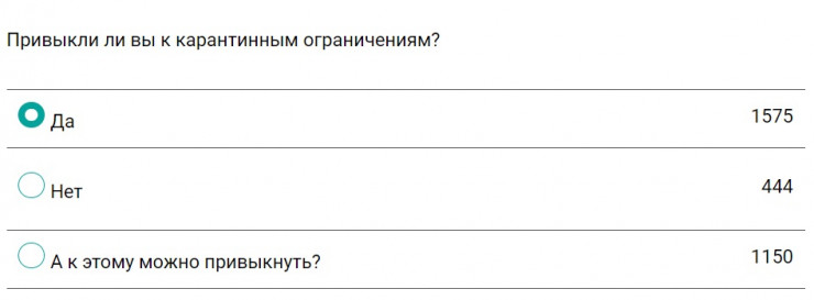 В вопросе о карантине читатели разделились на две части: 1575 человек привыкли к ограничениям, 1594 - нет.
