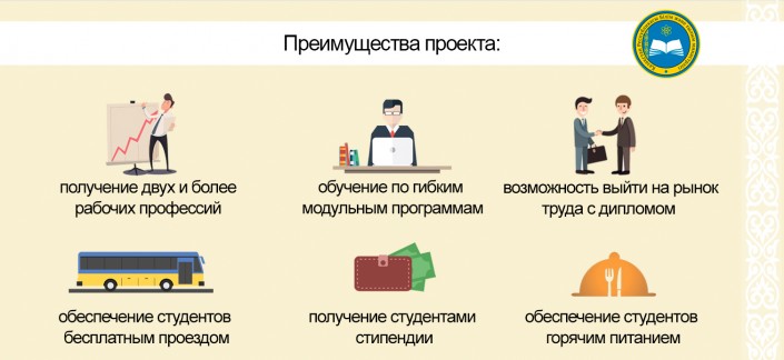В Министерстве пояснили, что при краткосрочном обучении обучаемые будут обеспечены стипендией, проездом (4 МРП на весь период обучения) и проживанием (5 МРП в месяц). Центры занятости будут содействовать трудоустройству лиц, завершивших обучение. Кроме того, граждане из отдаленных населенных пунктов также смогут получить бесплатно профессию, обучаясь в мобильных учебных центрах, которые будут созданы в пяти пилотных регионах: Акмолинской, Актюбинской, Восточно-Казахстанской, Костанайской, Мангистауской областях.