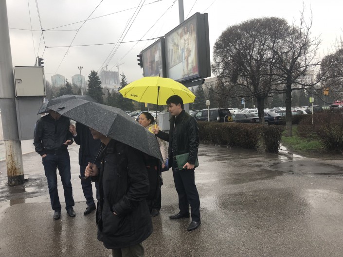 В итоге все сели на "двойку" и доехали до городского акимата.