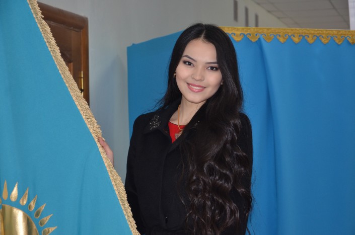 "Мисс Казахстан" Алие Мергембаевой исполнилось 18 лет, и она впервые проголосовала на выборах.
