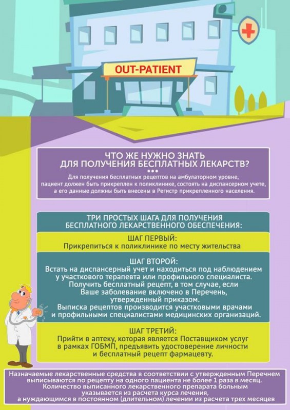 "Для получения бесплатных рецептов на амбулаторном уровне пациент должен быть прикреплен к поликлинике, состоять на диспансерном учете, а его данные должны быть внесены в Реестр прикрепленного населения", - сообщается в инфографике, опубликованной на официальной странице Минздрава в Facebook