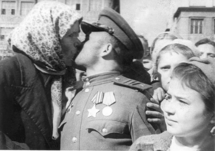 На фронте про праздники старались не забывать, хотя и не всегда это получалось. Женщин в их части было не много, в основном санитарки. Для них-то и откладывали солдаты из своего пайка продукты: масло, галеты, да бутылку водки - "для настроения". Уже позже, когда после ранения Александр отучился в танковом училище в Свердловске и стал командиром Т-34, на 8 Марта он дарил женщинам "Тройной одеколон". "Я получал его в посылках. Специально заказывал к празднику. А другого ничего и не было".