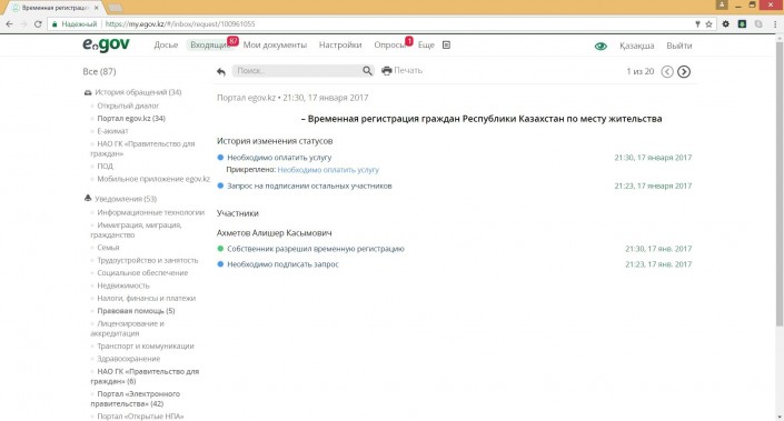 После этого собственник получит новое сообщение в своем личном кабинете с темой "Временная регистрация граждан Республики Казахстан".