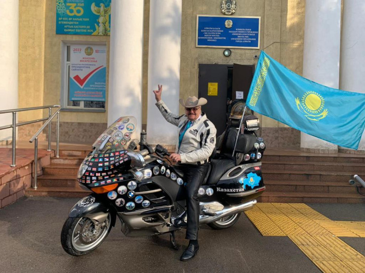 На выборы традиционно на своем мотоцикле приехал известный байкер Дмитрий Петрухин, который на своем "стальном коне" объехал почти весь мир.