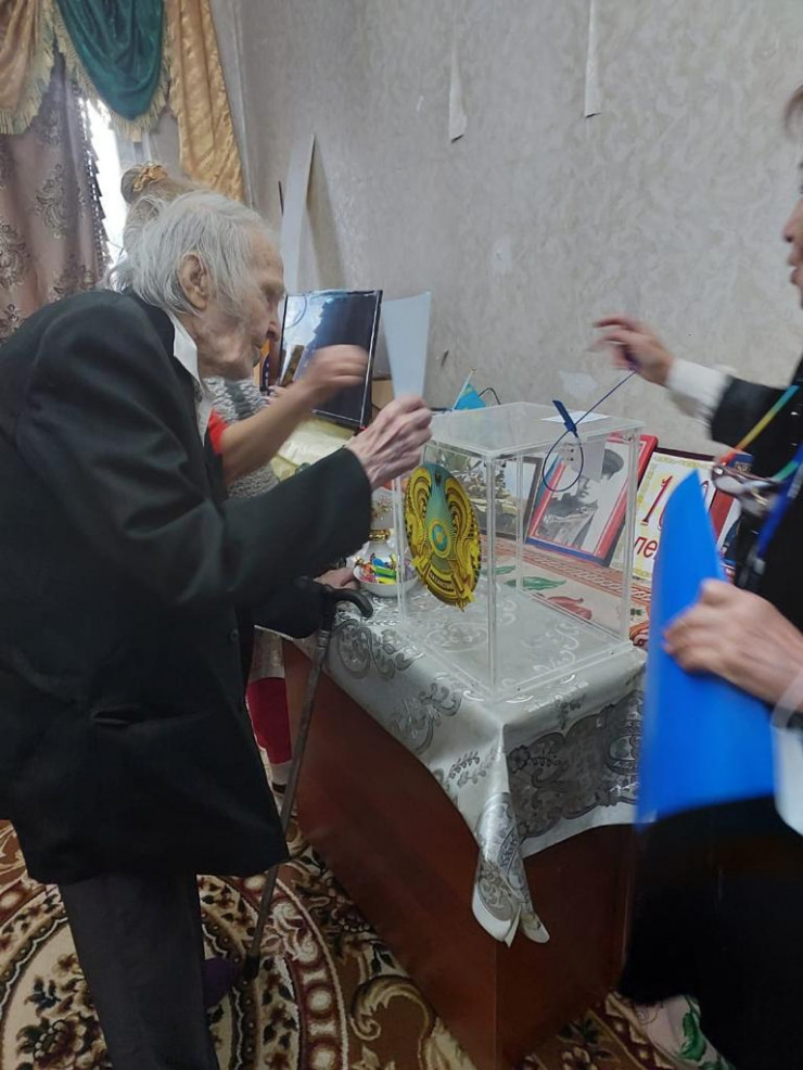 Для тех, кто не мог по состоянию здоровья прийти на участки, привезли урны на дом. Среди них были и ветераны Великой Отечественной войны.