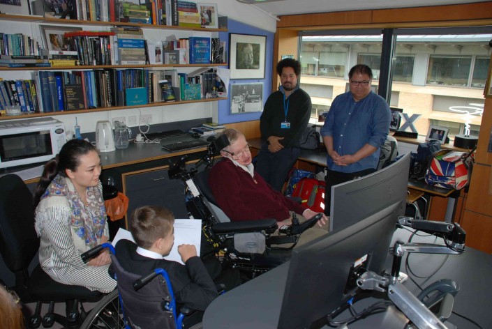 Как пишет Гульнар Бажкенова, встреча мальчика с профессором состоялась в Кембридже, в служебном кабинете профессора Стивена Хокинга.
